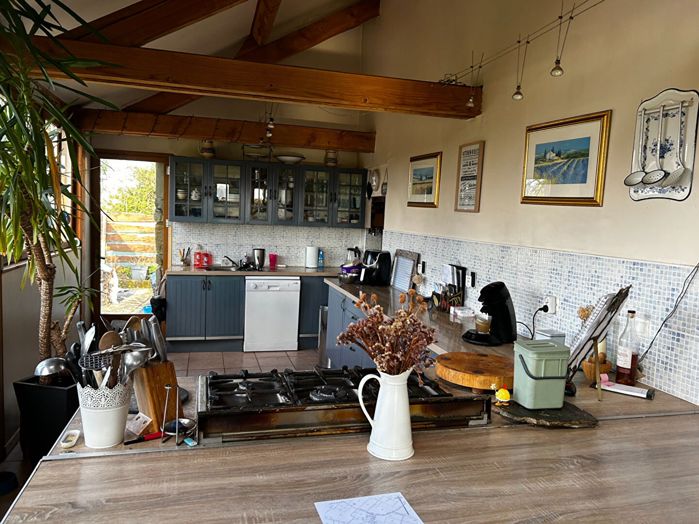 La maison principale d'environ 200 m² offre de généreux volumes : vaste cuisine équipée, séjour lumineux, bureau, véranda et 5 chambres.
