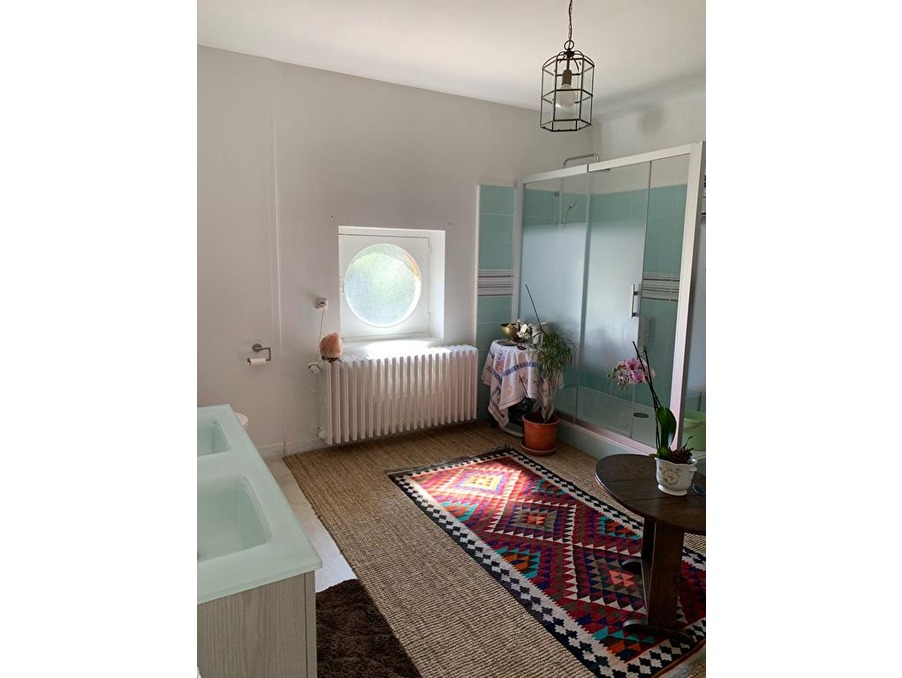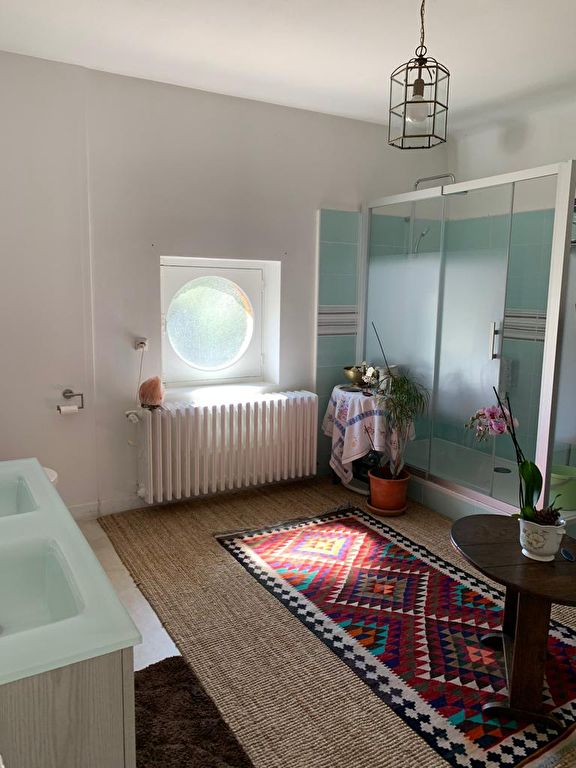 A 3 mn de la Cité Médiévale, Maison de ville en pierre, belles hauteurs sous plafond, parquet massif, clair. Elle comprend une entrée, salon/séjour traversant et cuisine donnant sur une grande terrasse plein sud, 4 chambres, salle d'eau. Grand sous -sol. Piscine. Un gîte complète ce bien. Chauffage centrale PAC. L'ensemble sur un beau terrain arboré et clos de 2400 m².